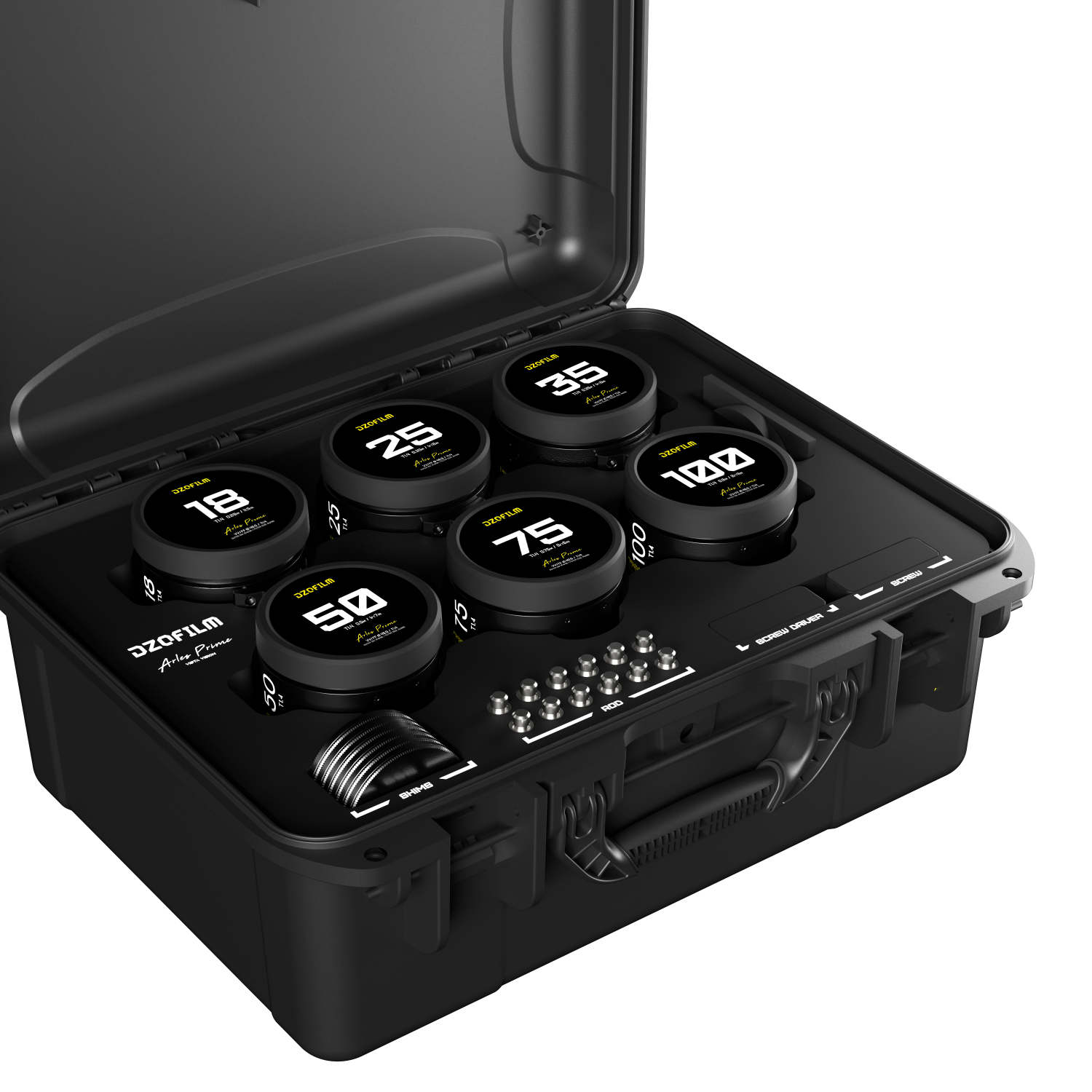 Sada objektivů DZOFILM Arles Prime 6pc Metric Lens Kit PL Mount Black Case DZO SAP6MPL. Zachyťte filmové vize pomocí sady objektivů DZOFILM Arles Prime 6 s PL bajonetem a elegantním černým pouzdrem. Tato metrická sada obsahuje objektivy 18 mm, 25 mm, 35 mm, 50 mm, 75 mm a 100 mm, které poskytují výjimečnou kvalitu obrazu a konzistentní výkon pro profesionální filmovou tvorbu. Pozvedněte své produkce s těmito univerzálními a spolehlivými kinematografickými objektivy.