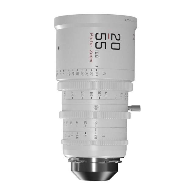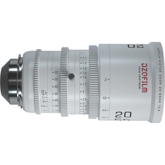Parfokální filmový objektiv DZO Pictor 20-55mm T2.8 pokrývá snímače formátu Super 35 / APS-C, nabízí světelnost T2,8 v celém rozsahu ohniskových vzdáleností a dodává se vč. výměnných bajonetů PL a EF. Konstrukce objektivu prakticky eliminuje dýchání a zaručuje ostrou kresbu v celé ploše i pěkné vykreslení scény mimo hloubku ostrosti díky cloně tvořené 16 lamelami. Samozřejmostí jsou ozubené prstence ostření, clony i zoomu pro snadné dálkové ovládání pomocí systémů bočního ostření (M0,8; chod prstence ostření 270°). Přední průměr je standardních 95 mm pro běžná kompendia, závit filtrů je 86mm. Nechybí také patka pro podepření objektivu v rámci rigů. Bílá varianta. Váha cca 1520 g. Pro bajonety PL a EF.
