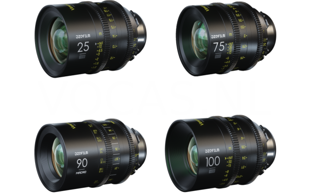 Sada objektivů DZOFILM Vespid 4 (25 mm, 75 mm, 100 mm T2,1, makro 90 mm T2,8) - Imperial (PL Mount). Poznámka: S touto sadou je dodávána sada nástrojů pro bajonet EF s konverzními adaptéry pro uživatele bajonetu EF.