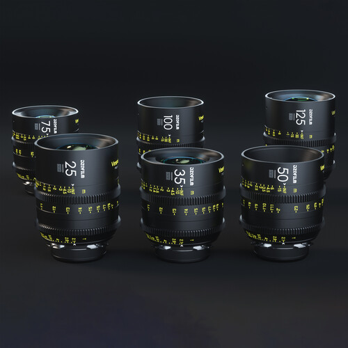 Tato sada DZOFilm VESPID 6 objektivů A je vhodná pro použití v různých produkcích od nezávislých až po studiové filmy. Objektivy 25, 35, 50, 75, 100 a 125 mm s bajonetem PL a objektivy s bajonetem EF, které jsou součástí balení, pokrývají full-frame snímače a promítají 46,5mm obrazový okruh, přesto jsou malé a lehké, takže jsou vynikající volbou pro práci z ruky, s gimbalem a s drony.