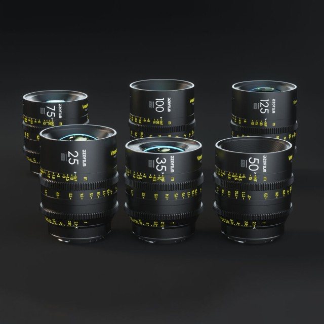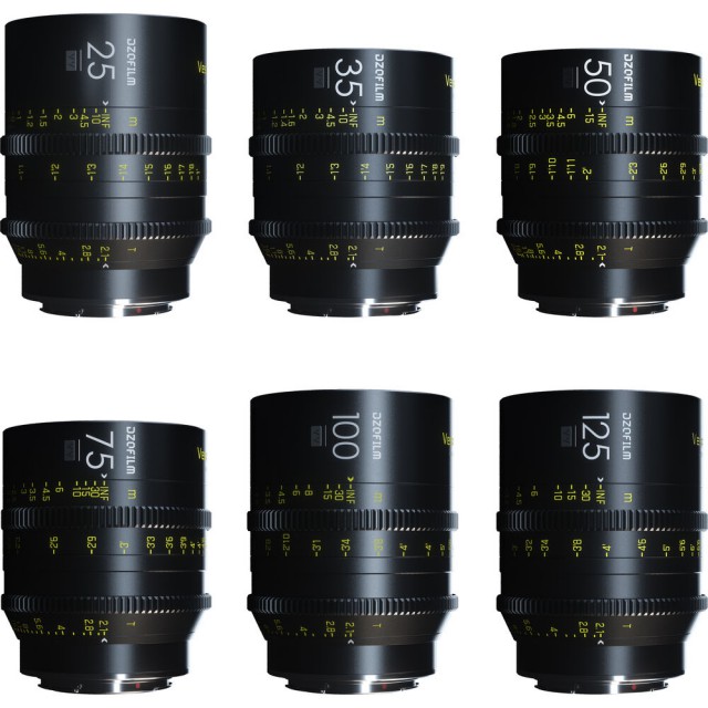 Sada 6 manuálních objektivů řady DZOFilm VESPID s (výměnným) bajonetem EF obsahuje modely s ohnisky 25, 35, 50, 75, 100 a 125 mm a světelností T2,1. Objektivy pokrývají snímače až velikosti FF (kruhová průmětna 46,5 mm), přesto jsou lehké a kompaktní i pro ruční natáčení, stabilizátory nebo drony. Konstrukce objektivů je uzpůsobena pro natáčení videa: zaručuje minimální „dýchání“, je zamezeno rotaci přední části objektivu i změně jeho velikosti při ostření, stejná pozice prstenců ostření a clony pak zajistí snadnou výměnu objektivů v rigu. Součástí sady je také pevný přepravní kufr.