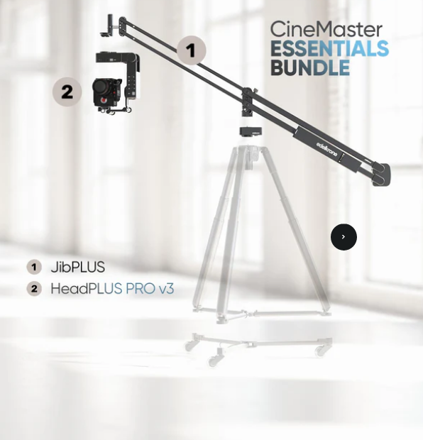 Edelkrone CineMaster Essentials Bundle: JibPLUS a HeadPLUS PRO v3, ideální pro profesionální filmaře, kteří hledají plynulý a přesný pohyb kamery a její ovládání.