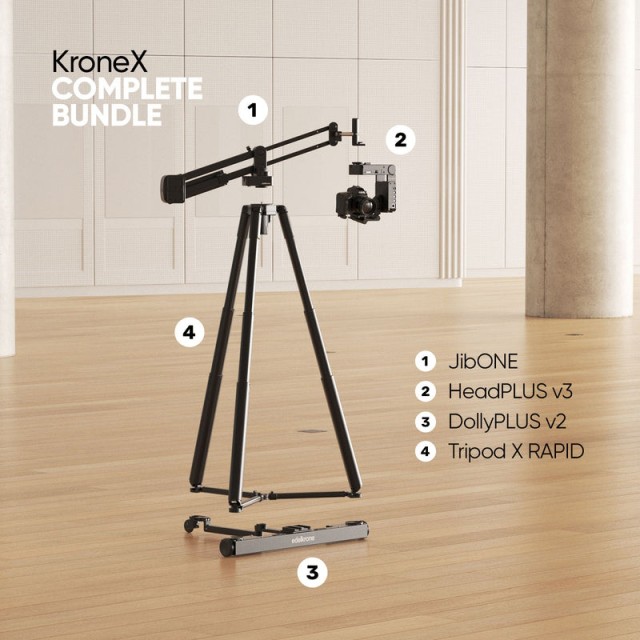 Edelkrone KroneX Bundle - Complete: Obsahuje HeadPLUS v3, JibONE v3, DollyPLUS v2 a Tripod X RAPID pro přesné pohyby kamery a dynamické natáčení.