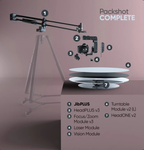 Edelkrone PackShot Bundle - JibPLUS Complete je plně automatizovaný, víceosý výložníkový systém určený pro přesné pohyby kamery v profesionální produktové videografii a filmování. Díky motorizovanému ovládání otáčení, naklápění a ostření, integraci bezdrátových aplikací a bezproblémové automatizaci pohybu poskytuje tento dokonalý balíček bezkonkurenční tvůrčí flexibilitu pro dynamické a opakovatelné záběry.