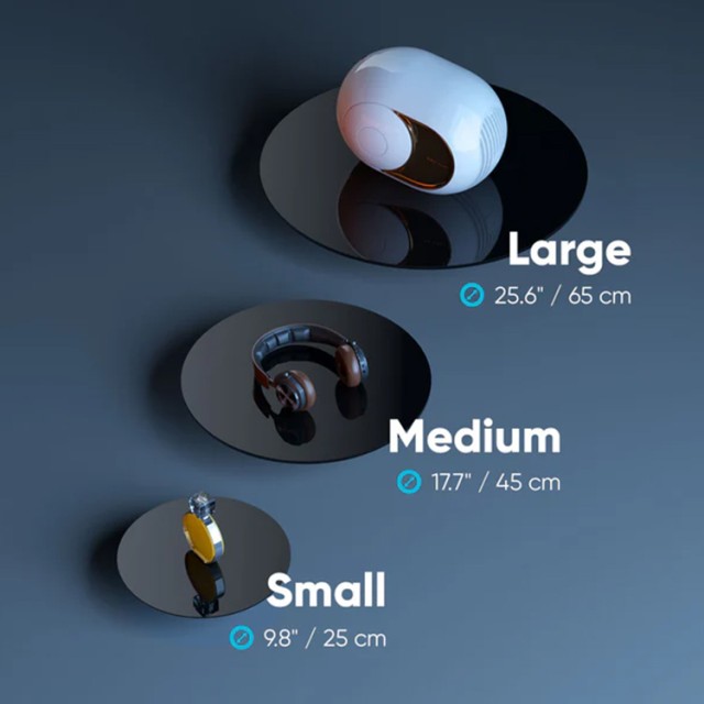 Turntable Module je navržen pro plynulé 360° otáčení produktů a je k dispozici ve třech velikostech, aby vyhovoval různým potřebám. Modely Medium a Large jsou vybaveny plexisklovým stojanem pro zvýšenou stabilitu.