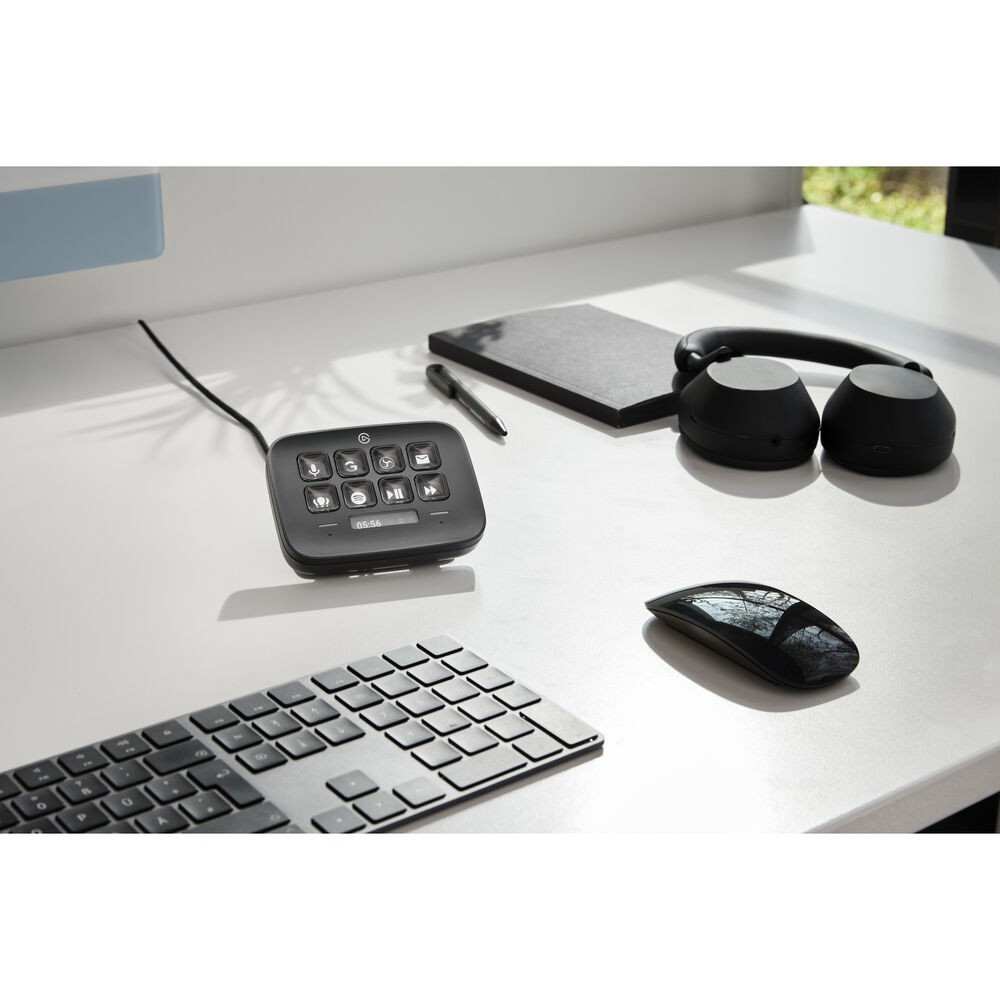 Elegantní černý design s integrovaným nastavitelným stojánkem se perfektně hodí na jakýkoli stůl. Napájí se výhradně přes USB-C, je plug-and-play a nevyžaduje žádné další ovladače. Ideální pro tvůrce obsahu, vzdálené pracovníky, streamery, hudebníky nebo kohokoli, kdo chce chytřejší ovládání bez zbytečné složitosti.