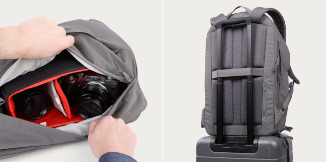Batoh je vysoce přizpůsobivý a je vybaven systémem upevnění vložek, který umožňuje integrovat 4L nebo 8L foto tašku, čímž se promění v plně funkční brašnu na fotoaparát. Speciální polstrovaná přihrádka na notebook bezpečně pojme zařízení až do velikosti 14", zatímco charakteristická vertikální kapsa pro rychlý přístup umožňuje rychlý přístup k nezbytným věcem, když jste na cestách.