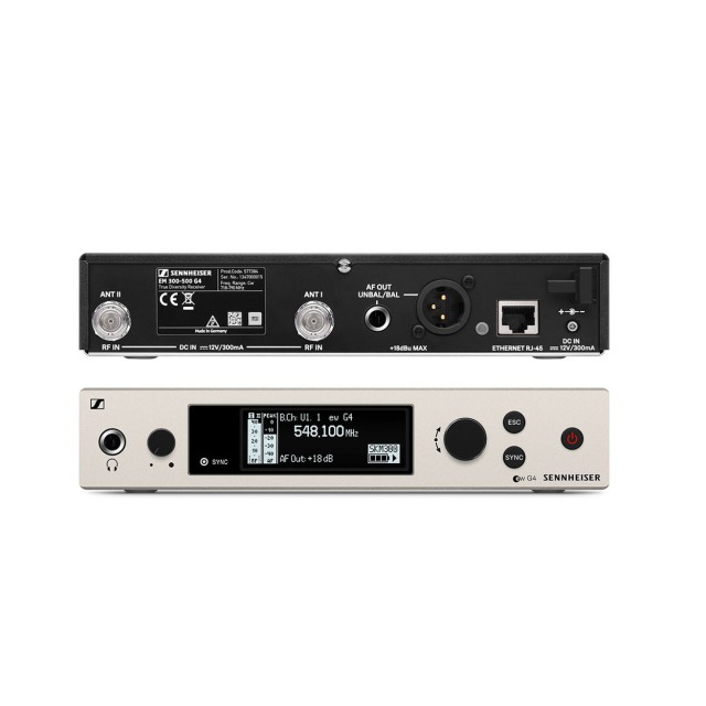 Sada bezdrátových lavalier mikrofonů sestávající z 1 bezdrátového bodypack vysílače SK 300 G4 RC, 1 lavalier mikrofonu ME 2-II, 1 rackového přijímače em 300-500 G4 a 1 rackové sady GA3. Číslo výrobku 509655