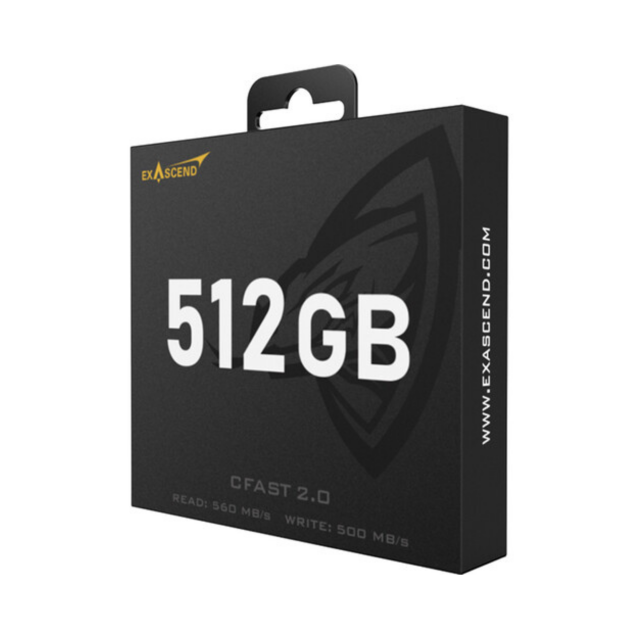 512GB paměťová karta Exascend/Archon CFast 2.0 je kompatibilní s kamerami RED, Blackmagic Design, ZCam, Canon C200, Canon C300 a dalšími zařízeními kompatibilními se standardem CFast 2.0, který využívá rozhraní SATA III 6 Gb/s. Zvládne zpracovávat RAW video a vyznačuje se maximální rychlostí čtení až 560 MB/s, maximální rychlostí zápisu až 500 MB/s a minimální rychlostí zápisu až 450 MB/s.