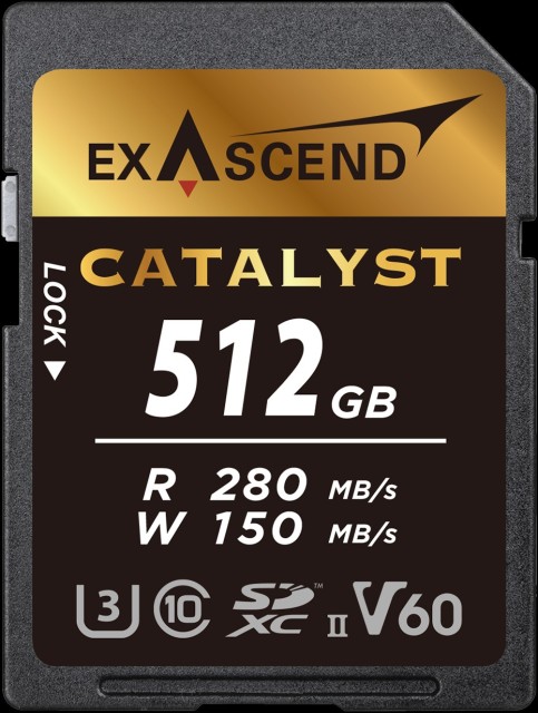 512GB paměťová karta Catalyst UHS-II SDXC od společnosti Exascend je optimalizována pro moderní fotografii a kinematografii a umožňuje rychlé nahrávání a nahrávání záznamů i při práci s extrémními datovými toky, abyste měli jistotu, že nedochází k výpadkům snímků. Tato karta má úložnou kapacitu 512 GB a využívá sběrnici UHS-II pro maximální rychlost sekvenčního čtení 280 MB/s a maximální rychlost sekvenčního zápisu 150 MB/s. Díky zařazení do rychlostní třídy V60 je zaručeno, že minimální rychlost zápisu neklesne pod 60 MB/s.