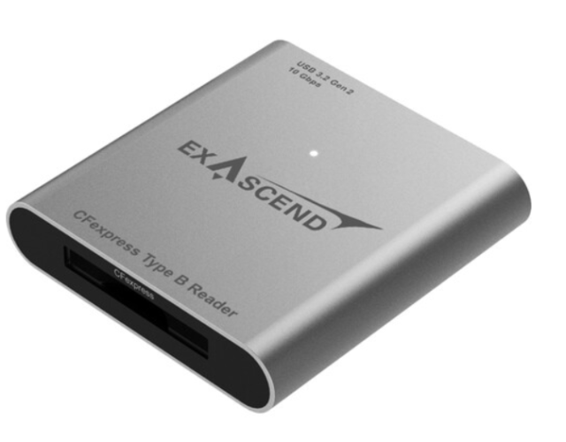 Čtečka karet Exascend EXCRCFX1 CFexpress typu B poskytuje rychlost čtení 1700 MB/s přes rozhraní USB 3.2 Gen 2. Je vyrobena z hliníku a obsahuje kabely USB-C na C/A. Ideální pro rychlý přenos 8K RAW a fotografií v profesionálních pracovních postupech.