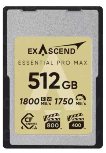 Paměťová karta Exascend Essential Pro Max CFexpress Type A 4.0 512 GB je určena pro profesionální tvůrce, kteří vyžadují rychlý, stabilní a spolehlivý výkon pro videa a fotografie ve vysokém rozlišení. Je založena na standardu CFexpress 4.0 nové generace s PCIe Gen4 x1 a nabízí rychlost čtení a zápisu až 1 800 MB/s, certifikaci VPG400 a VPG800 a pokročilé řízení teploty, které zajišťuje plynulé nahrávání v rozlišení 8K a 12K bez výpadků i během dlouhých natáčecích sezení.