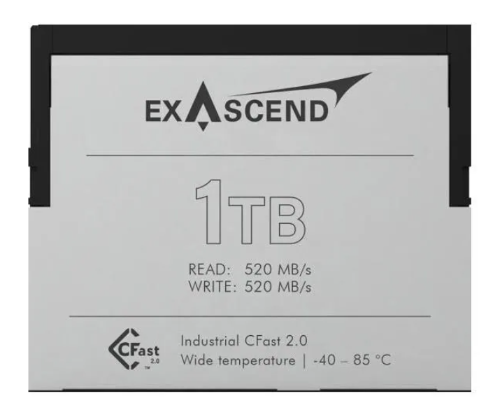 Exascend EXSD3X001TB-I je 1 TB průmyslová paměťová karta CFast 2.0 (řada SD3X) s rozhraním SATA, která poskytuje trvalou rychlost čtení 520 MB/s a zápisu 520 MB/s pomocí 3D TLC NAND. Pracuje při napětí 3,3 V v teplotním rozsahu od -40 °C do +85 °C, má rozměry 42,8 x 36,4 x 3,6 mm a je ideální pro vysoce kapacitní a vysoce spolehlivé podnikové úložiště…