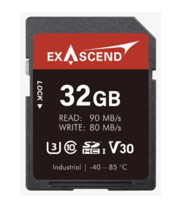 Exascend Industrial SD300 V30 C10 SD 6.0 32 GB (EX32GSDV30-IDE) je odolná karta SDXC pro průmyslové aplikace, která poskytuje rychlost čtení až 90 MB/s a rychlost zápisu až 80 MB/s s hodnocením V30/U3/C10/A2 pro spolehlivé 4K video a sériové snímání. Pracuje v teplotním rozmezí od -40 °C do +85 °C, má MTBF 2 000 000 hodin, výdrž až 1 210 TBW a vstupní napětí 2,7–3,6 V, což je ideální pro náročná prostředí, jako jsou sledovací, automobilové nebo vestavěné systémy.