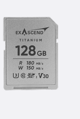 Exascend Titanium SDXC UHS-I V30 128 GB (číslo dílu EX128GSDU1-M) je prémiové úložné řešení určené pro náročné filmaře, fotografy a tvůrce obsahu. Je vybaveno robustním celokovovým pláštěm, který poskytuje 20krát větší odolnost proti ohybu než standardní SD karty (odolnost proti tlaku až 200 N) a účinný odvod tepla, který zabraňuje tepelnému omezení výkonu při delším natáčení v rozlišení 4K. Inteligentní řízení teploty karty udržuje výkon i v náročných podmínkách, při provozu od -25 °C do 85 °C a bezpečném ukládání dat od -40 °C do 85 °C, zatímco její kompaktní formát SDXC (15 x 11 x 2 mm) se bezchybně integruje s fotoaparáty Canon, Nikon, Sony a dalšími digitálními zrcadlovkami/bezzrcadlovkami. Podporováno omezenou doživotní zárukou včetně bezplatných služeb obnovy dat.