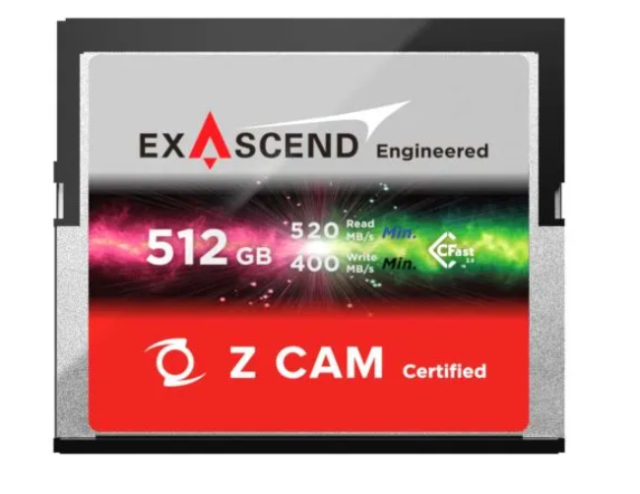 Karta Exascend EXSZ3X512GB 512GB Z CAM CFast poskytuje trvalý výkon 520 MB/s pro plynulé natáčení. Je vybavena adaptivní tepelnou regulací (ATC) a volitelnou funkcí záchrany dat z výroby. Má certifikaci Z CAM a průmyslovou odolnost pro extrémní podmínky.