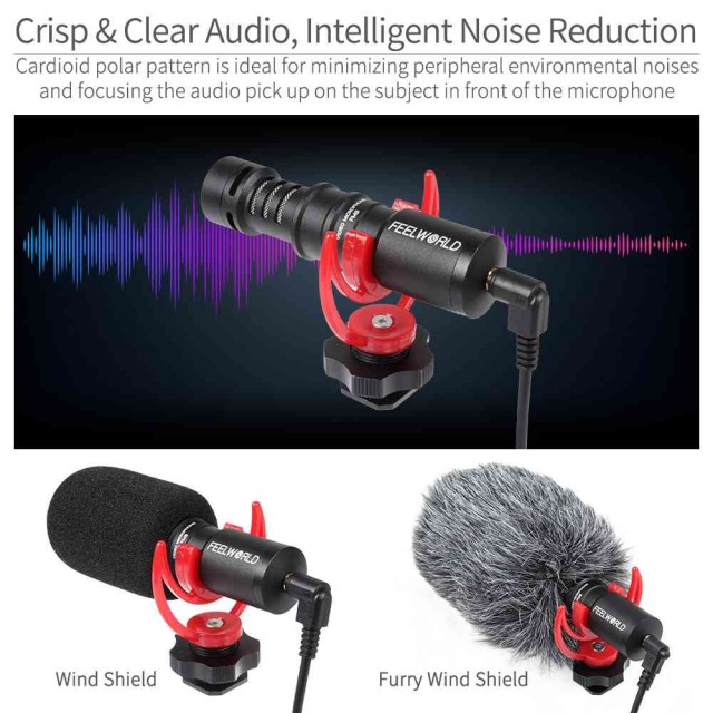 Čistý a jasný zvuk – Vysoce citlivé jádro mikrofonu, chlupatá ochrana proti větru a ochrana proti větru účinně chrání před okolním zvukem a ozvěnou, díky čemuž je lidský hlas jasnější a čistší.