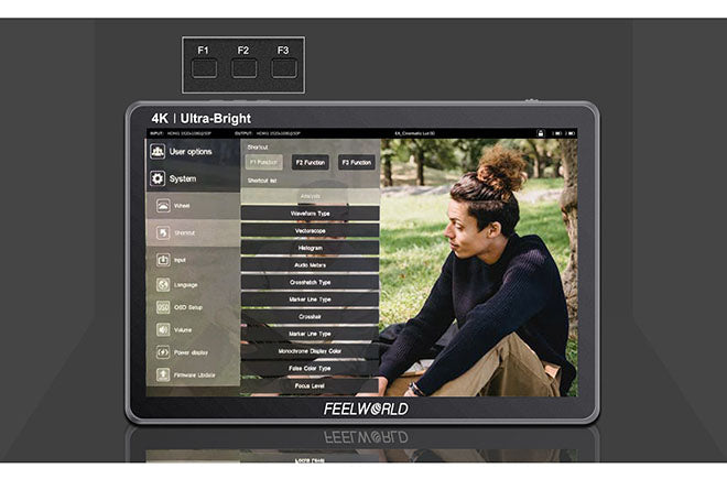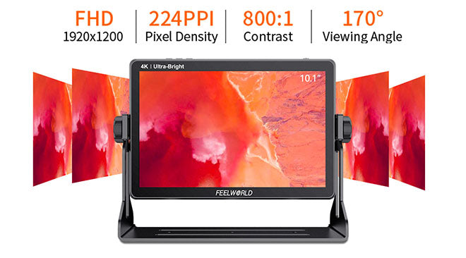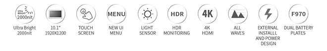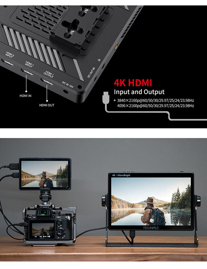 FEELWORLD LUT11H je 10,1palcový profesionální kamerový monitor s plně dotykovou obrazovkou a ultra jasem 2000nit. Podporuje vstup a výstup signálu HDMI s frekvencí až 4K@60 Hz. Poskytuje řadu nástrojů pro monitorování a rámování s novým uspořádáním nabídky, různé číselné parametry jsou přehledné na první pohled, což usnadňuje ovládání. Na zadní straně kamery LUT11H je externí instalační a napájecí sada F970, která umožňuje instalaci např. bezdrátového přenosu, LED světla atd. Kombinuje monitor s bezdrátovým přenosem, aby se zbavil zbytečných kabelů, což je ideální pro režisérské monitorování, 1. AC pro zaostření tahání ve filmovém štábu. Konstrukce se dvěma deskami pro baterie umožňuje instalovat dvě baterie F970 najednou pro dlouhodobé napájení i ve venkovním prostředí. Ideální pro natáčení štábu v terénu, monitorování a postprodukci.