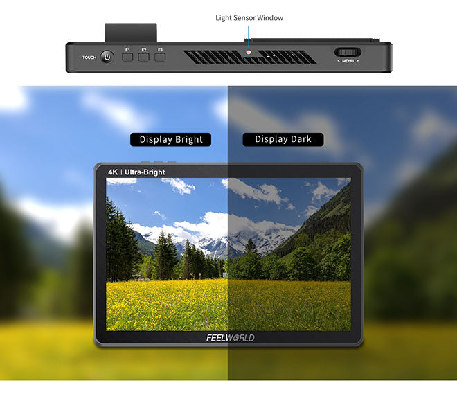 Vestavěný snímač okolního světla, od zatemněného studia po slunečné místo, od půlnočního měsíčního světla po polední sluneční svit, dokáže automaticky upravit jas monitoru tak, aby odpovídal vašemu filmovacímu prostředí.