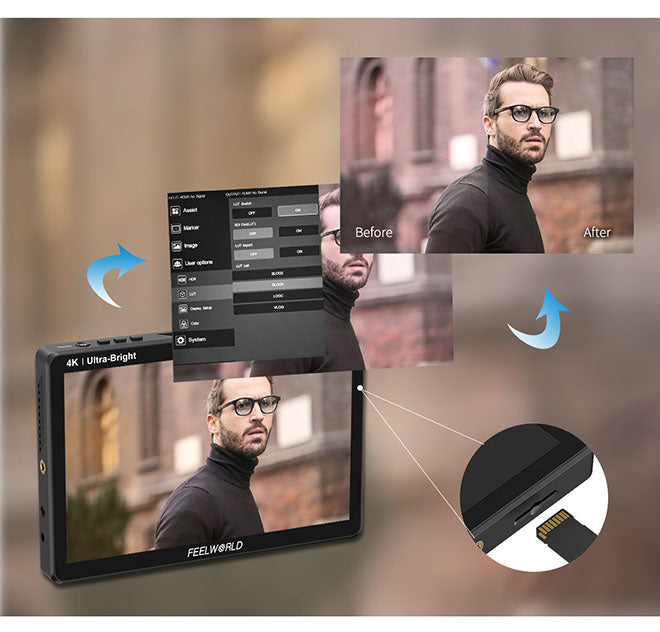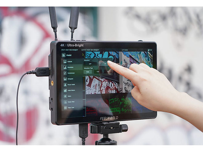 FEELWORLD LUT11H je 10,1palcový profesionální kamerový monitor s plně dotykovou obrazovkou a mimořádným jasem 2000nit. Podporuje vstup a výstup signálu HDMI až 4K@60 Hz. Poskytuje řadu nástrojů pro monitorování a rámování s novým uspořádáním nabídky, různé číselné parametry jsou přehledné na první pohled, což usnadňuje ovládání. Na zadní straně kamery LUT11H je externí instalační a napájecí sada F970, která umožňuje instalaci např. bezdrátového přenosu, LED světla atd. Kombinuje monitor s bezdrátovým přenosem, aby se zbavil zbytečných kabelů, což je ideální pro režisérské monitorování, 1. AC pro zaostření tahání ve filmovém štábu. Konstrukce se dvěma deskami pro baterie umožňuje instalovat dvě baterie F970 najednou pro dlouhodobé napájení i ve venkovním prostředí. Ideální pro natáčení štábu v terénu, monitorování a postprodukci.