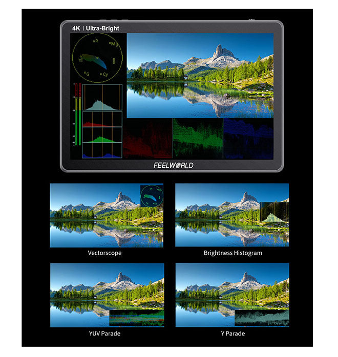 Vestavěné monitorování průběhů, můžete si vybrat z průběhů (RGB Parade, YUV Parade, Y Parade), vektorového rozsahu, histogramu, zobrazení fáze a úrovně zvuku a získat přesné monitorování průběhů vysílání, které zobrazuje vše, co potřebujete vědět z technického hlediska o vašich video a audio signálech. Funkce lze otevřít samostatně a podporují také jednu klávesu pro otevření všech režimů rozsahu. LUT11H se tak stává ideální volbou pro monitorování živé produkce, takže již nemusíte používat samostatné drahé scopy!