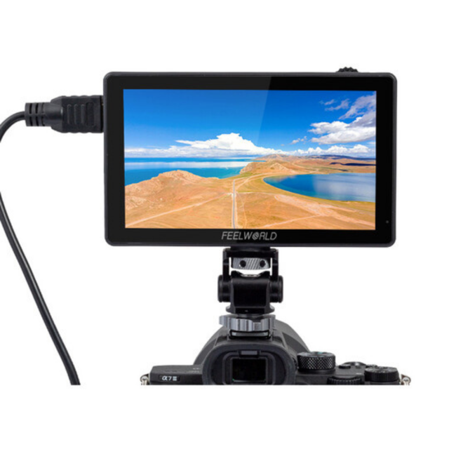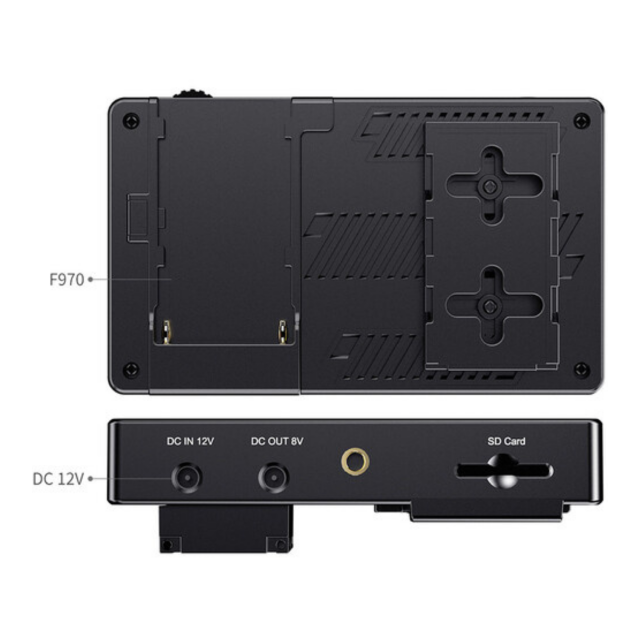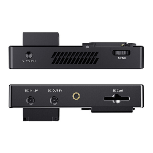 5,5“ kamerový monitor s vysokým jasem (3.000 cd/m²), dotykovým displejem a podporou 3D LUT korekcí (integrované presety HLG 2020, HLG 709, HLG P3 HDR 3D LUT a Rec709 De-slog3/SLog2, SLog3, LogC, V-Log; nebo import vlastních až 50 LUT souborů pomocí SD karty). Monitor dále nabízí snímač okolního osvětlení pro automatické stmívání obrazovky, napájení pomocí externí baterie (F970 apod., není součástí), sluchátkový výstup, 8V= napájecí výstup např. pro napájení kamery... Zadní stěna hostí také atrapu/redukci baterie NP-F pro snadnou montáž/napájení např. bezdrátového přijímače. Dodává se vč. redukce pro bleskovou patici a Micro HDMI kabelu.