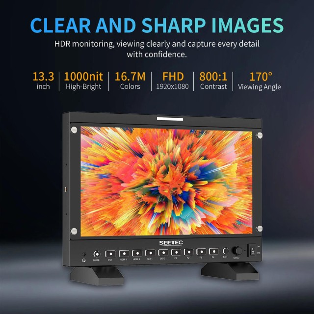 P133-PRO je vysoce kvalitní monitor, který je dostatečně univerzální pro použití ve vysílacím studiu, při živé produkci nebo při natáčení v exteriéru. Pracuje se všemi formáty videa SD/HD/3D-SDI až 4K HDMI 60 fps a nabízí XLR, napájecí vstup a desku pro baterie V-Mount, takže jej můžete používat s baterií nebo jej připojit k externímu napájení. Monitor lze kromě stolního stojanu připevnit na stěnu prostřednictvím stojanu VESA.