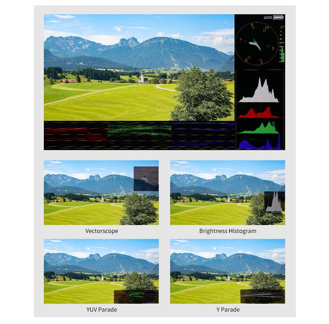 Monitor nabízí monitorování RGB Parade, YUV Parade, Y Parade, vektorskop, histogram a úrovní zvuku. P133-Pro se tak stává ideální volbou pro monitorování živé produkce, takže již nemusíte používat samostatné drahé měřící přístroje!