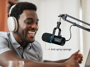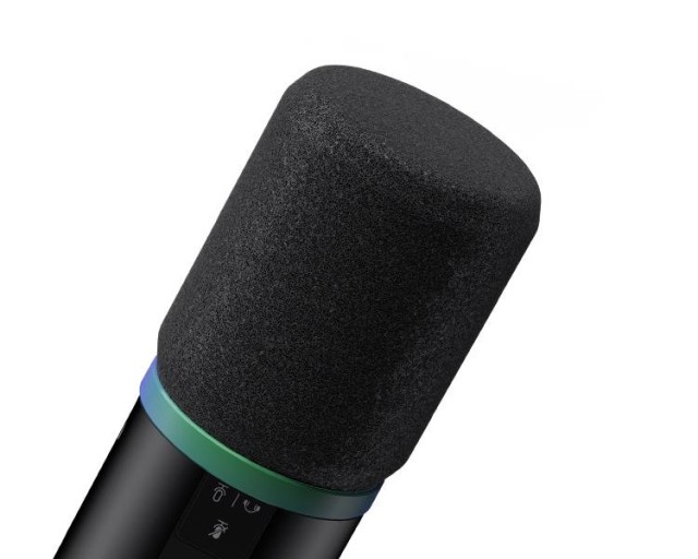 Vybaveno odnímatelnou houbou proti rozstřiku pro efektivní příjem zvuku, která dále zlepšuje kvalitu zvuku.