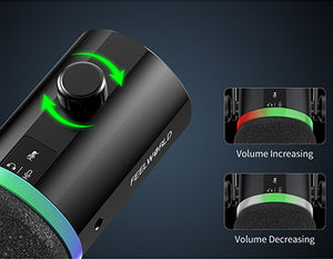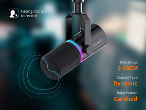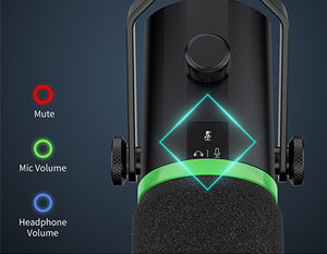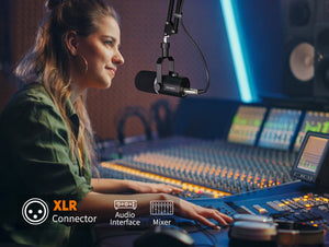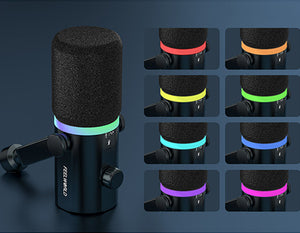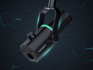 FEELWORLD PM1 XLR USB dynamický mikrofon pro podcasting nahrávání hraní her živé vysílání. FEELWORLD PM1 s módním a kompaktním designem, který poskytuje přirozený, čistý zvuk a bohaté funkce. Vhodný pro různé scénáře použití, je ideální pro podcast, zpěváka, hráče her a hlasové herce k nahrávání a živému vysílání.