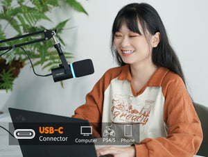Výstup USB-C lze jednoduše připojit k počítači, chytrému telefonu nebo jinému mobilnímu zařízení. A snadno používat funkci tlačítka ztlumení, ovládání hlasitosti a monitorování v reálném čase.