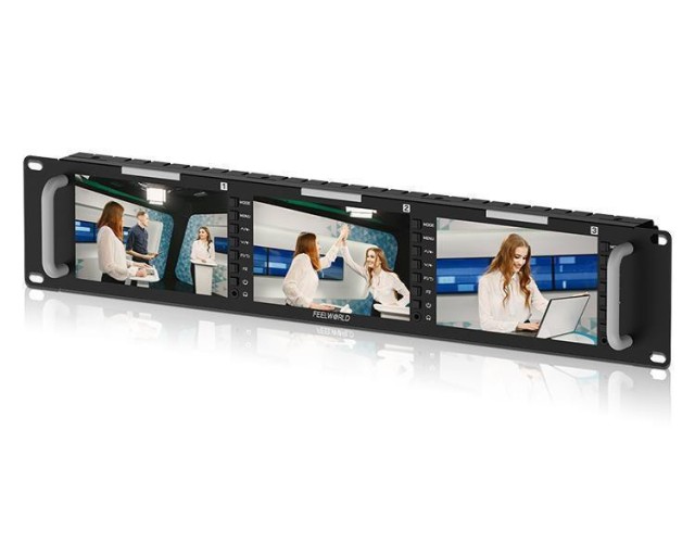 Feelworld T51 PLUS je 5,5" monitor s trojitou montáží do racku určený pro profesionální vysílání a produkci videa. Díky rozlišení Full HD, rozhraní 3G-SDI, 4K HDMI a AV vstupu/výstupu nabízí bezproblémové monitorování více obrazovek, takže je ideální pro použití ve studiu, řídicí místnosti nebo na pracovišti.