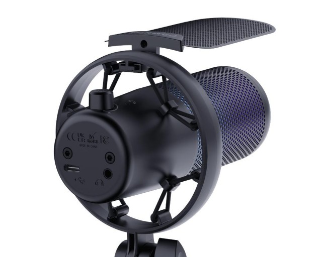 VM1 je vybaven multifunkčním knoflíkem, kterým můžete otáčením nastavovat hlasitost, dlouhým stisknutím přepínat mezi mikrofonem a sluchátky nebo krátkým stisknutím přepínat režimy RGB osvětlení.