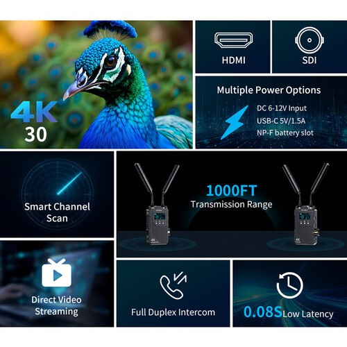 Díky vestavěnému plně duplexnímu interkomu mohou kameraman i režisér komunikovat v reálném čase, což zvyšuje efektivitu a koordinaci během natáčení. Systém také podporuje až čtyři přijímače současně, což umožňuje více monitorovacích bodů na place.