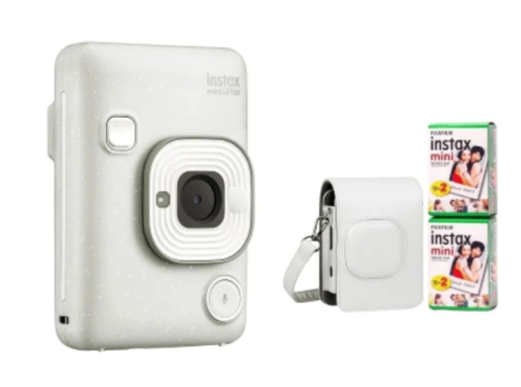 Jádrem sady je hybridní instantní fotoaparát Instax Mini LiPlay v luxusní barvě Misty White. Na rozdíl od tradičních instantních fotoaparátů kombinuje LiPlay digitální snímač s okamžitým tiskem, což vám umožňuje před tiskem prohlédnout si fotografie na 2,7palcovém LCD displeji. To vám pomůže pořídit pokaždé dokonalý snímek a zároveň snížit plýtvání filmem.