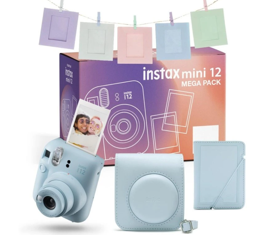 Fujifilm Instax Mini 12 Mega Pack Pastel Blue + příslušenství nabízí vše, co potřebujete k zachycení a zobrazení vašich okamžitých vzpomínek. Instax Mini 12 aktualizuje klasický design Instax Mini hravým zaobleným tvarem inspirovaným mýdlovými bublinami v pastelově modré barvě, díky čemuž je stylový a zábavný na používání.