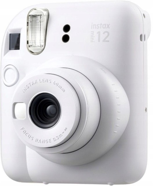 INSTAX mini 12 je nástupcem modelu mini 11, který má mírně upravené křivky a oblouky na těle fotoaparátu, což má za následek hladší a plynulejší linie. Mezi hlavní změny patří funkce "spuštění" fotoaparátu, kdy původní tlačítko nahradil kroužek kolem objektivu, který v jedné poloze fotoaparát zapne a v další poloze jej nastaví do režimu autoportrét-selfie. Mezi nové funkce patří "korekce paralaxy" a "automatické ovládání blesku"