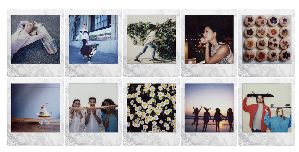 Hybridní instantní fotoaparát řady instax mini. Díky 10 efektům objektivu a 10 filmovým