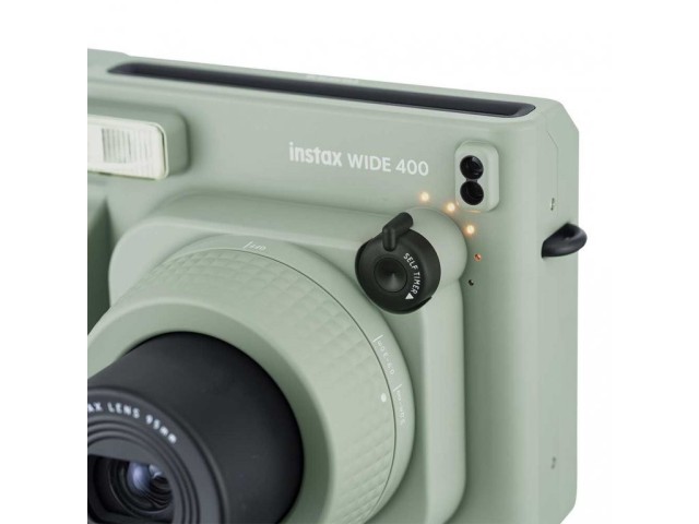 Pokud jde o nový vzhled, japonský výrobce FUJIFILM dal fotoaparátu Instax WIDE 400 zaoblenější, drsnější vzhled v moderním stylu. WIDE 400 přichází v neotřelé, decentní zelené barvě, díky níž tento instantní fotoaparát vypadá ještě působivěji. Samotný fotoaparát má rozměry 162 x 98 x 123 mm, což z něj dělá největší instantní fotoaparát Fujifilm, ale je poměrně lehký a váží jen 616 g.