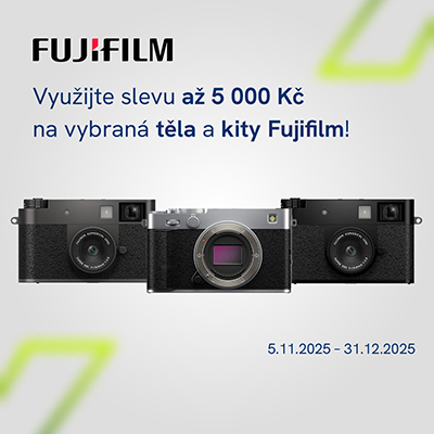 Využijte exkluzivní slevu až 5 000 Kč na vybrané produkty FUJIFILM! Získejte těla a kity z řad X-E5 a X-HF1 za zvýhodněné ceny. Akce platí od 5. 11. do 31. 12. 2025 nebo do vyprodání zásob – ideální dárek pro každého fotografa.