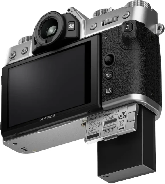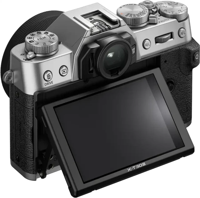 FUJIFILM X-T30 III je kompaktní bezzrcadlový fotoaparát ve stylu retro o hmotnosti 378 g s formátem APS-C, který kombinuje klasický design s nejmodernějším výkonem. Je vybaven snímačem X-Trans CMOS 4 BSI s rozlišením 26,1 MP, procesorem X-Processor 5, 6,2K/30p 10bitové video, autofokus s detekcí objektu založený na umělé inteligenci a revoluční volič simulace filmu umístěný nahoře s 20 předvolbami a třemi přizpůsobitelnými sloty. Díky vylepšenému portrétnímu vylepšovači, 4stupňové digitální stabilizaci obrazu, centrálnímu elektronickému hledáčku s rozlišením 2,36 milionu bodů, výklopnému dotykovému displeji, bezdrátovému tisku Instax a až 425 snímkům na jedno nabití poskytuje intuitivní a kreativní ovládání pro fotografy a tvůrce obsahu, kteří ocení styl, rychlost a vynikající kvalitu přímo z fotoaparátu.