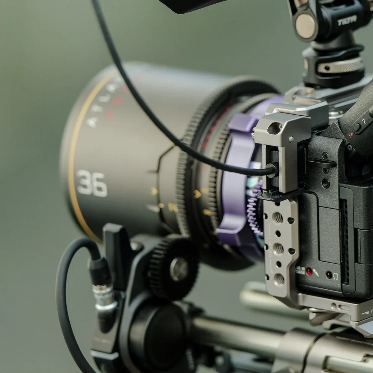 Klec obsahuje dva kabelové svorky s šroubem s hlavou, které zajišťují pevné uchycení HDMI a USB-C kabelů. Tím se minimalizuje riziko poškození konektorů při natáčení a zajišťuje se bezpečný provoz i při pohybu kamery.
