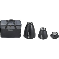Sada úzkých reflektorů Godox Knowled nabízí profesionálním fotografům a kameramanům všestranné ovládání osvětlení pro monobloky Godox MG1200BI, MG2400BI, MG1200R a MG2400R. Sada obsahuje reflektory 15°, 30° a 60°, z nichž každý je navržen tak, aby tvaroval rozptyl paprsku pro různé potřeby osvětlení. Reflektor 15° poskytuje soustředěný úzký paprsek, který je ideální pro selektivní osvětlení nebo dlouhý dosah, reflektor 30° poskytuje mírné rozptýlení pro střední objekty a reflektor 60° vytváří široký paprsek pro osvětlení větších ploch nebo skupin. Reflektory mají stříbrný vnitřek pro optimální odraz světla a vestavěný rychlý kroužek pro snadnou montáž otočením. Sada je lehká a přenosná a je dodávána s praktickou taškou, takže je ideální pro focení ve studiu nebo v exteriéru.