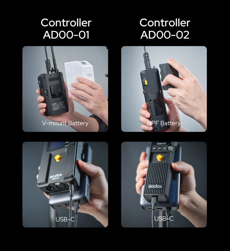 AD32 K3 je kompatibilní s bateriemi USB-C, V-mount a NPF a poskytuje až 20 hodin nepřetržitého provozu z baterie o výkonu 100 Wh. Jeho patentovaná technologie nastavení frekvence podporuje pět úrovní frekvence bez blikání, což zajišťuje plynulý provoz i při snímkové frekvenci až 300 fps. Sadu lze ovládat pomocí přiloženého ovladače AD00-02, aplikace Bluetooth nebo DMX s transceiverem CRMX a režimem Lead/Follow pro synchronizované nastavení více zařízení.