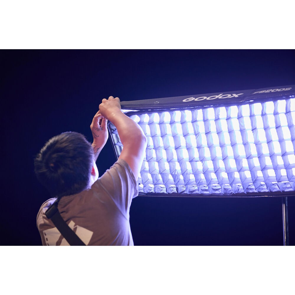 Podložka je navržena s ohledem na flexibilitu, lze ji ohýbat nebo skládat, aby se přizpůsobila různým podmínkám natáčení. Mezi způsoby ovládání patří přiložený ovladač, DMX512/RDM, CRMX nebo aplikace Godox Light přes Bluetooth z vzdálenosti až 30 m. Možnosti napájení jsou univerzální: AC 100–240 V nebo volitelné baterie V-Mount (nejsou součástí balení) pro natáčení na místě. S krytím IP54 je světlo odolné proti prachu a vodě a je vhodné pro vnitřní i venkovní použití.