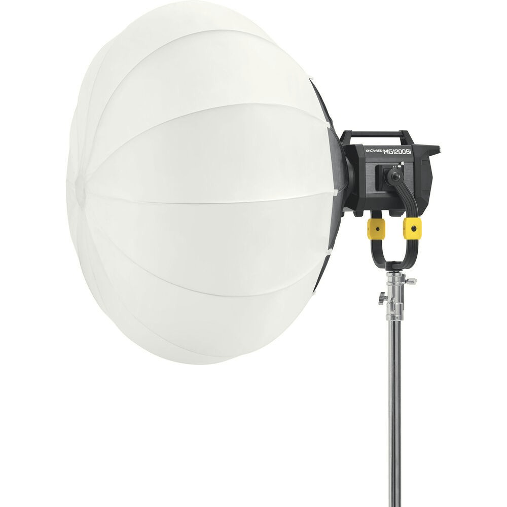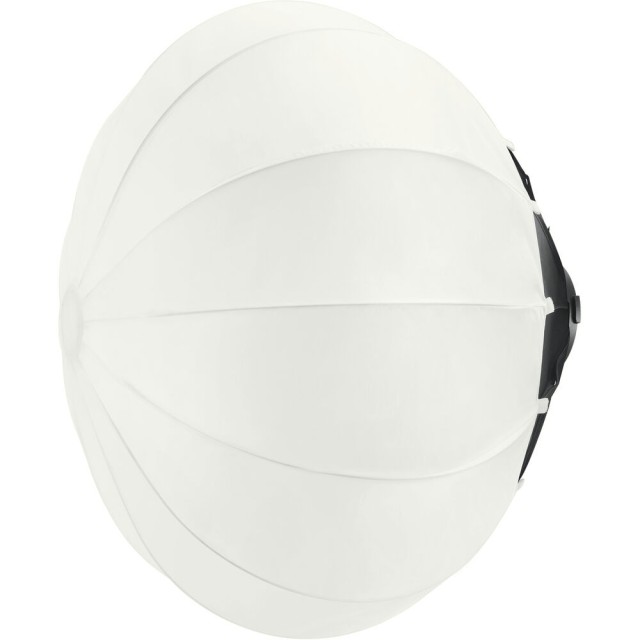 Softbox Godox Knowled G-Mount 90 cm Lantern je navržen tak, aby poskytoval měkké, 360° obklopující osvětlení pro kameramany, videografy a fotografy používající zařízení MG1200BI, MG2400BI, MG1200R nebo MG2400R. Tento 35" sférický softbox, navržený speciálně pro proprietární systém Godox G-mount, zajišťuje dokonalou kompatibilitu bez nutnosti použití dalších adaptérů. Jeho bílé vnitřní provedení zvyšuje difúzi pro čisté, přirozené světlo, zatímco odolná konstrukce z polyesteru a nehořlavé bavlny zajišťuje dlouhodobý výkon v náročných produkčních prostředích. Lampion je ideální pro osvětlení celých místností nebo vytvoření hladkého, ambientního vyplnění a obsahuje také odnímatelnou sukni pro směrové ovládání, která uživatelům poskytuje flexibilitu při tvarování a omezení rozptylu podle potřeby. Ať už se používá na filmových scénách, v televizních studiích nebo fotografických ateliérech, tento lampionový softbox poskytuje spolehlivé, vysoce kvalitní výsledky s snadnou instalací a demontáží.