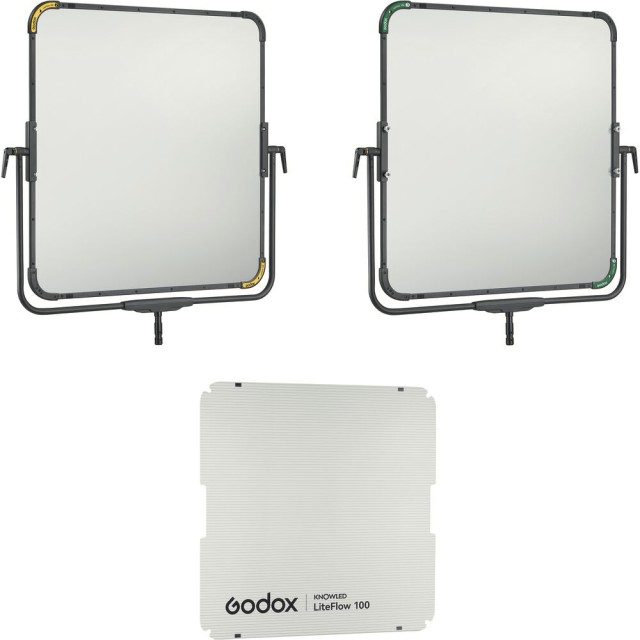 Godox Knowled LiteFlow 100 Double-Sided Reflector je profesionální osvětlovací řešení určené pro filmaře, kameramany a profesionály v oblasti osvětlení, kteří hledají maximální flexibilitu při ovládání nepřímého světla. Tento systém zahrnuje dva zrcadlové hliníkové panely o rozměrech 100 x 100 cm namontované na odolných rámových konzolách, které nabízejí několik možností difúze: tvrdé, střední, měkké a měkké pásové světlo. Každá strana poskytuje prodlouženou světelnou dráhu s přirozeným poklesem, což vám umožňuje přizpůsobit se různým potřebám osvětlení, od wolframových zdrojů po denní světlo nebo měkké doplňkové světlo.