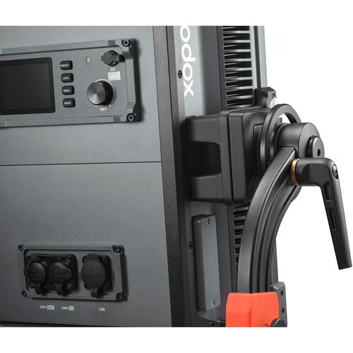 Integrované profesionální ovládání: Model Pro je vybaven integrovaným napájecím zdrojem (PSU) pro větší pohodlí a nabízí kompletní sadu profesionálních ovládacích prvků: integrované ovládání, DMX 512/RDM, LumenRadio CRMX a podporu Ethernetu pro pokročilé síťové připojení přes Art-Net a sACN. Ovládání je také k dispozici přes Bluetooth aplikaci Godox KNOWLED.