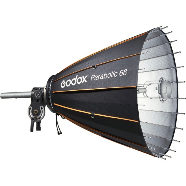 Sada Godox Parabolic 68 Reflector Kit (P68kit) je profesionální osvětlovací řešení určené pro módní a portrétní fotografii. Tato sada obsahuje parabolický reflektor o průměru 27,6 palce s vysoce reflexním stříbrným vnitřkem, který poskytuje čisté, zrcadlové odlesky a zároveň vytváří široké, obklopující světlo. Součástí sady je zaostřovací držák, tyče, adaptér pro blesk, sada úchytů a přepravní taška, které fotografům nabízejí přesnost, univerzálnost a přenosnost.