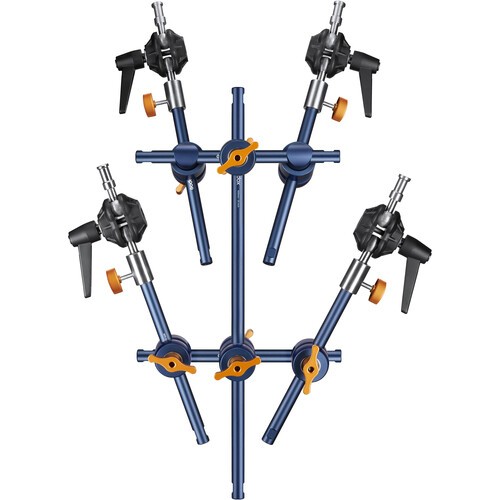 Sada Godox GK7 Multi-Reflector Array Grip Kit poskytuje spolehlivý a flexibilní montážní systém pro reflektory KNOWLED LiteFlow, díky čemuž je ideální pro profesionální osvětlovací sestavy. Sada je navržena tak, aby pojala více desek LiteFlow současně, a obsahuje jednu 19,6" dlouhou prodlužovací tyč a šest menších tyčí pro přizpůsobitelné konfigurace. Kloubová ramena s jednoduchými a dvojitými knoflíky umožňují přesné nastavení, zatímco čtyři svorky s ráčnovými rukojeťmi pevně zajistí vaše reflektory na místě. Lehká, ale robustní sada GK7 zajišťuje plynulý a všestranný provoz při fotografování nebo natáčení videa. Je kompatibilní se všemi reflektory Godox LiteFlow a je dodávána v krabici o rozměrech 23,1 x 16,8 x 7,3 palce a hmotnosti 24,57 lb.